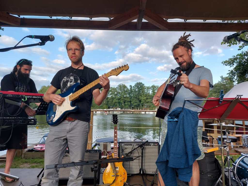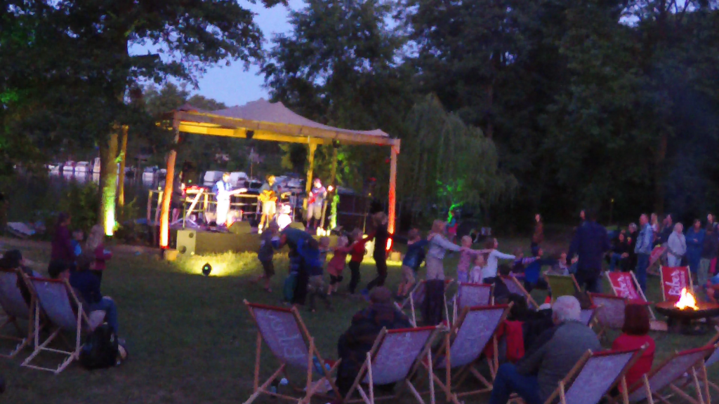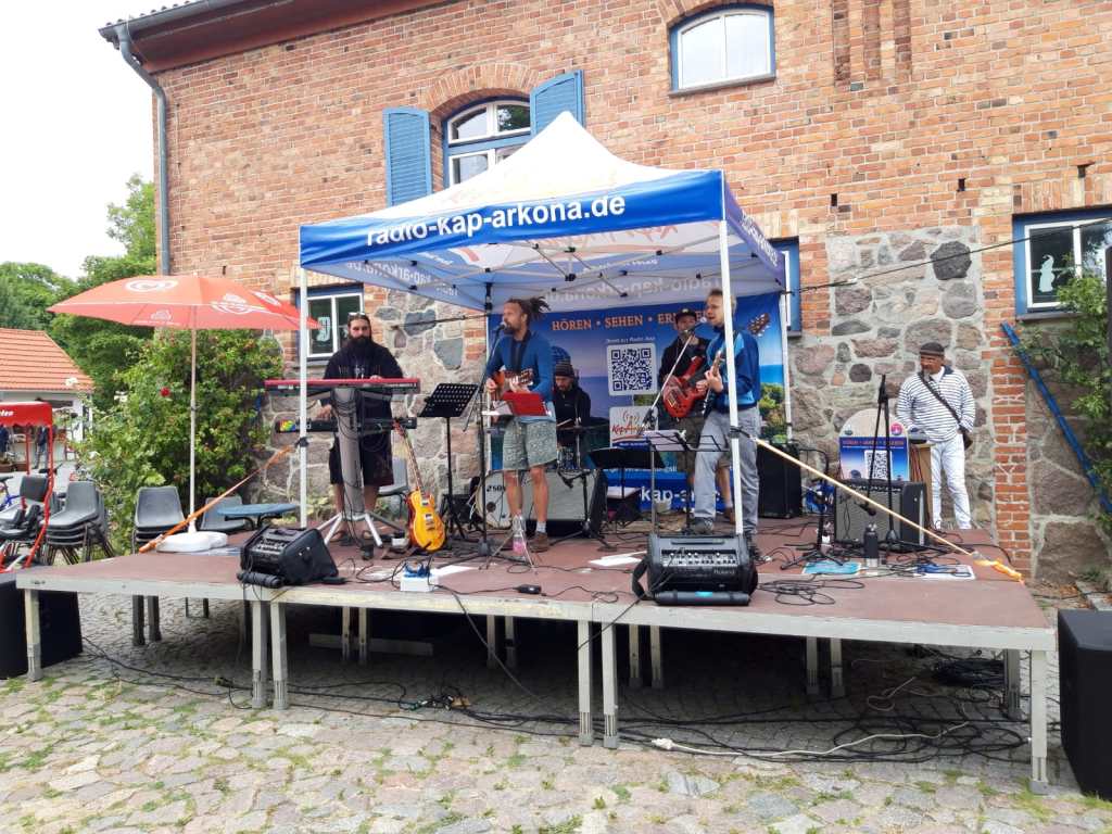 Bevor wir im August erst einmal eine kleine Sommerpause einlegen, haben wir’s noch mal richtig krachen lassen! Bis an’s letzte Zipfelchen von Rügen hat es uns verschlagen und wir haben die Urlaubswütigen auf dem Rügehof auf Kap Arkona mit Reggae bereggaet, so richtig reggaemäßig eben. Danach sind wir gleich weiter gedüst und haben den Biber Ferienhof an der Müritz eingeheizt, unterstützt hat uns dabei ein großes Lagerfeuer, obwohl wir doch sicherlich den Großteil des Heizprozesses übernommen haben. Wir waren nach dem Konzert so schön in Urlaubsstimmung, dass es einfach zu schade war, dort nicht direkt ein paar Tage Urlaub dranhängen zu können… Nur unser Trommler genoss das Ambiente (und sehr gute Bio-Essen im anliegenden Restaurant) noch eine Weile mit seiner Family im Wohnwagen. Hast alles richtig gemacht, Toni!