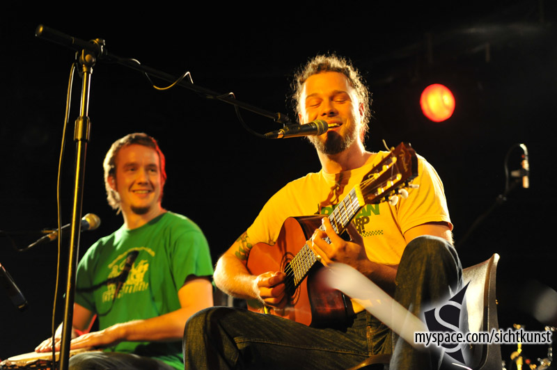 So haben die Small Town Artists vor 15 Jahren mal angefangen, im Trio-Akustik-Gewandt, an der Djembe mein guter Freund M² und auf dem Foto leider nicht zu sehen Tobias an der Zweitgitarre und am Gesang. Kurzfristig haben wir die Ehre ein kleines Privatkonzert in fast eben dieser Formation zu spielen. M² wird dieses Mal auch wieder dabei sein, aber statt Tobias ist Stephan mit am Start (unser Posaunist und Mit-Trällerer) und meine wenige Vieligkeit an der Gitarre und der guten Laune – Björn.