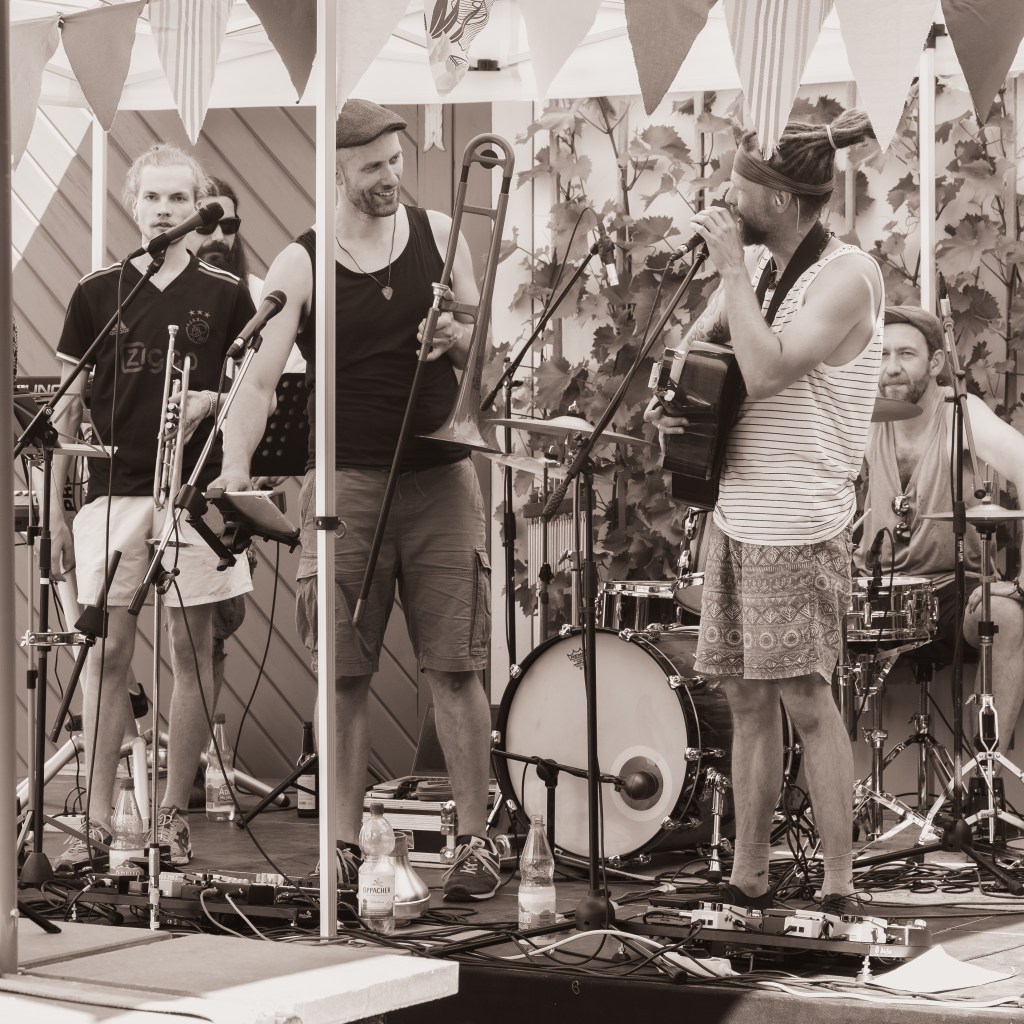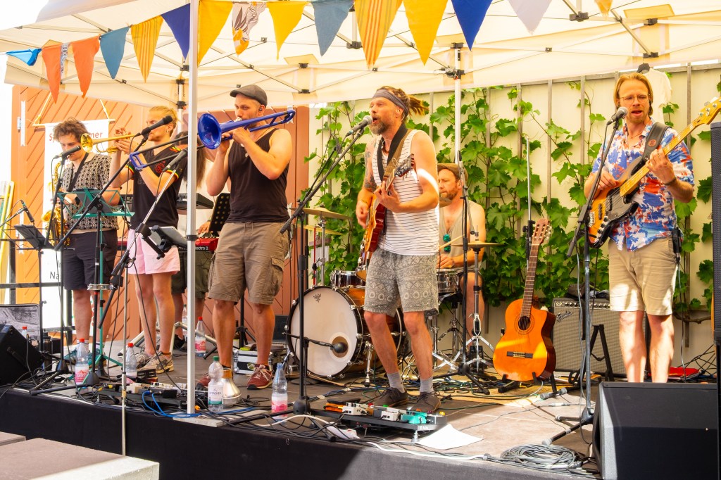 Kennt ihr das Gefühl, wenn ein Konzert noch lange nachhängt? Die Mucke letzten Freitag am Bandhaus war so eine, die uns noch tagelang positive Energie mitgegeben hat. Keine 1000 Leute (naja fast 😛 ) vor der Bühne, aber die, die da waren hatten richtig Spaß und haben uns richtig Spaß haben lassen. Und natürlich muss auch unbedingt erwähnt sein, dass extra 2 tierisch (oder doch eher menschlich???) tolle Musiker und Menschen aus Berlin sich das Programm drauf gedrückt haben und mit uns auf die Bühne gekommen sind, für einen sehr schmalen Taler. Danke Jörn und Konstantin – ihr seid der Hammer! So waren wir halb Tooth of a Lion und halb Small Town Artists – zieht euch die erstere Band unbedingt auch mal rein! Und auch Florian hat uns wieder beehrt und die Trompete mit seiner Posaune gespielt – wie geil!
