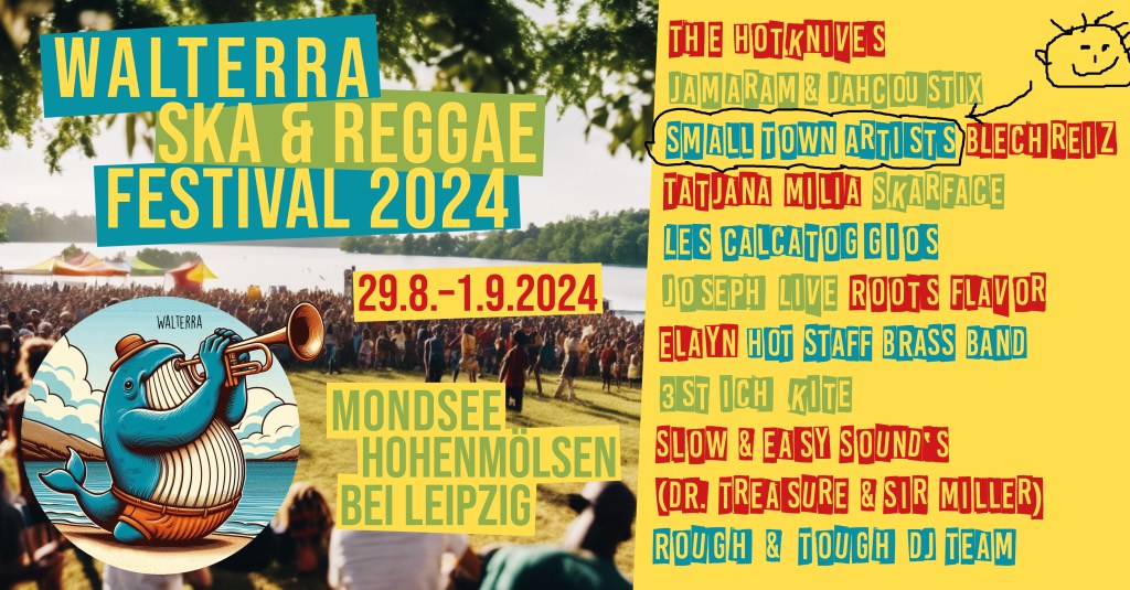 Das kommende Wochenende wir abgefahren, wir tanzen sozusagen auf 2 Hochzeiten: am Freitag spielen wir auf dem neuen Reggae-Ska-Festival Walterra am Mondsee in Hohenmölsen und Samstag geht’s dann zum Funkloch Open-Air nach Kirschberg. Und jedes Mal sind ein Haufen gute Bands mit uns am Start! Checkt es aus und kommt lang (oder kurz, wenn’s sein muss 😛 )