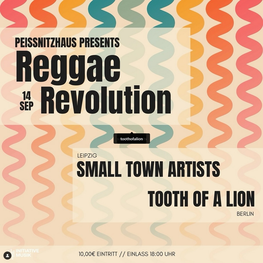 Auch wenn der Sommer vorbei zu sein scheint, morgen wird’s richtig schön! Beim Peißnitzhaus auf der Peißnitzinsel in Halle bei Leipzig in Sachsen / Deutschland auf dem Kontinent Europa auf unserer Erde… gibt’s nicen deutschsprachigen Reggae gleich im Doppelpack. Die Small Town Artists haben das Vergnügen mit der geilen Berliner Truppe Tooth of a Lion dem Publikum die Wärme in die Herzen zu treiben! Kommt vorbei und fühlt euch high (auch ohne Ganja)! Wir starten 18:30 Uhr, don’t be too Latte !