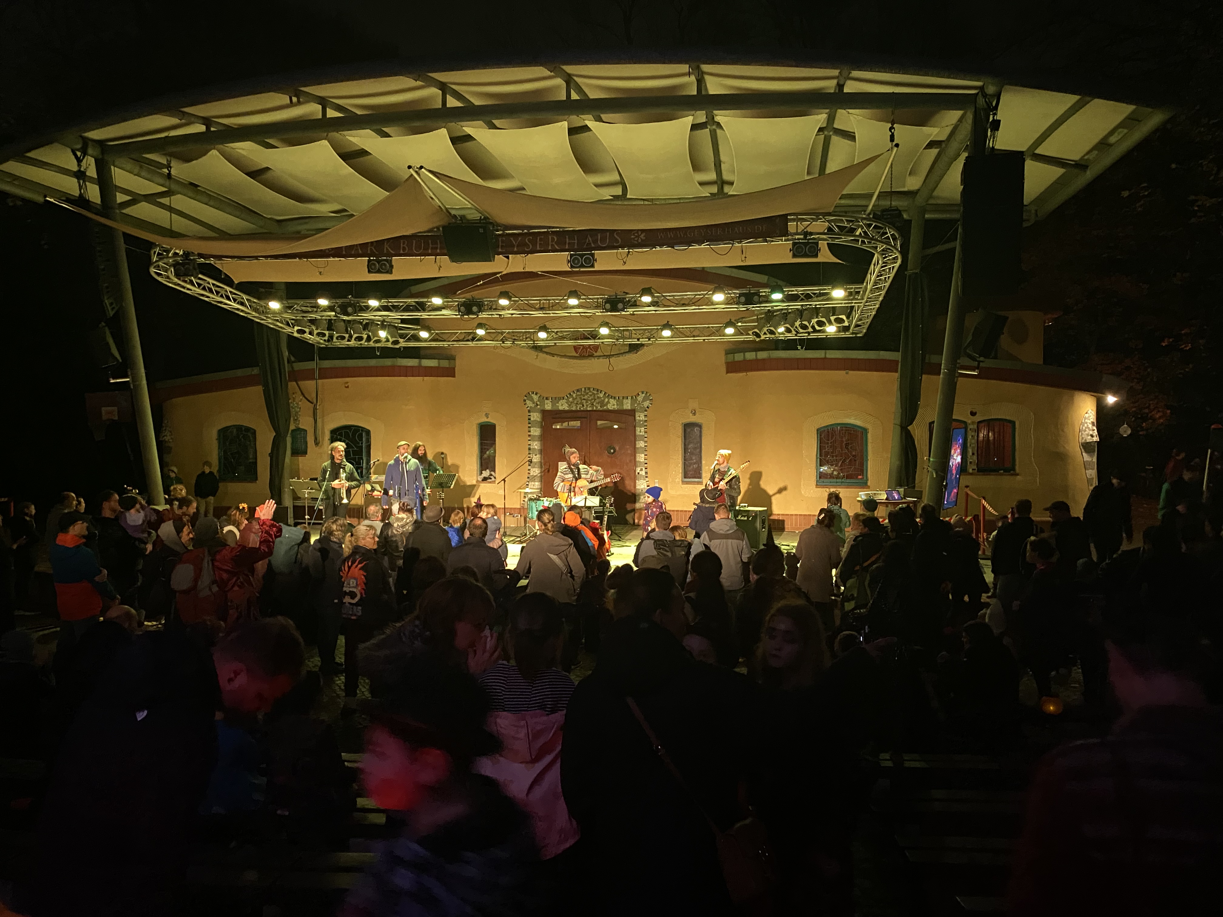 Wow, was für ein Ambiente…! Auch wenn der Regen genervt hat, kamen viele Geister, Vampire und andere Gruselgestalten um mit uns zum smoothen Offbeat zu spooken. Super geiler Sound durch den Haus- und Hoftechniker Amin war auch garantiert. Eine Halloween-Reggae-Nummer gab es auch auf die Ohren uuuuund die kleine Tochter vom Front-Schrat Björn hat zum ersten Mal 2 Lieder auf der Bühne mitgesungen – rührend!