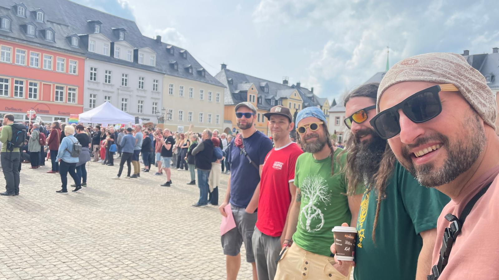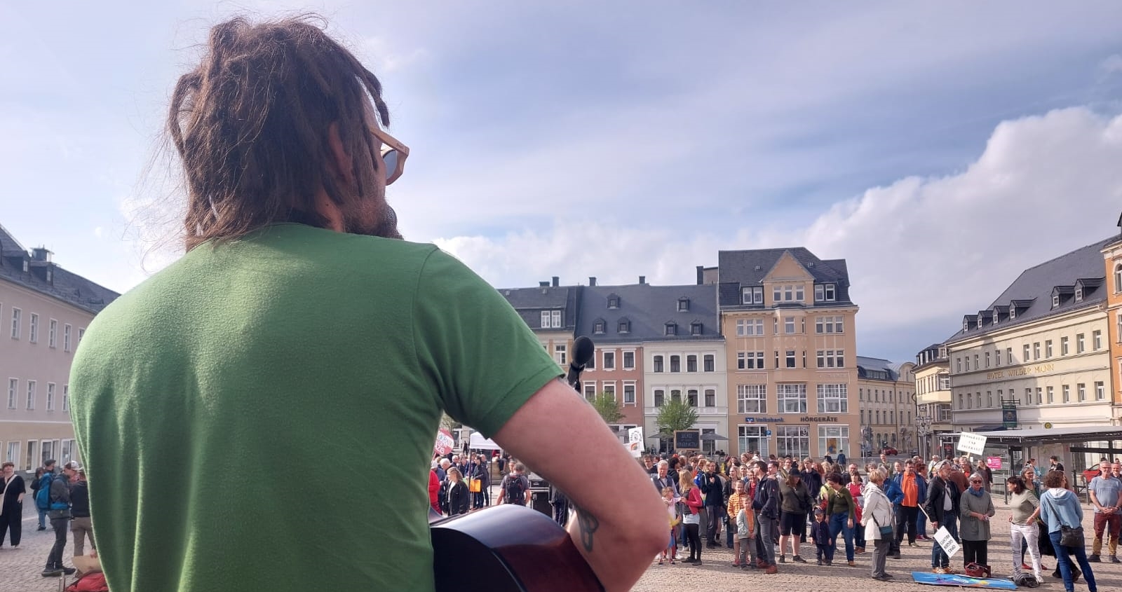 Das war mal eine wichtige Veranstaltung mit wertvollen Redebeiträgen und Menschen, die den Kopf inklusive der darin wohnenden Gedanken am rechten (oder hier wohl passenderweise „am linken“) Fleck tragen und das übergeordete Ziel von Frieden und einer ONE LOVE nicht aus den Augen verlieren… Und dazu gab es auch noch passende Musik von einer coolen Band. Mmh, wie hießen die nochmal… Achja, das waren ja wir, die Small Town Artists! Gerne immer wieder für solch eine Sache 😉