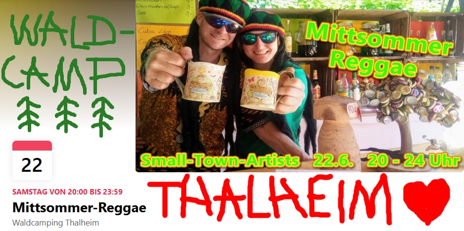 Es ist dieses Jahr ganz schön auffällig, dass das Erzgebirge Bock auf Reggae hat, was ist da los? Ändert sich die Welt doch noch zum Guten? Spaß beiseite (oder besser noch mehr Spaß her!?), letztes Wochenende war sehr nice, Freitag haben wir zur Fête de la musique in Stollberg vor einem lecker veganen Restaurant auf der Straße gespielt und es war ordentlich was los. Es wurde schon für nächstes Jahr angefragt… Und dann wieder mal Thalheim, man könnte ja meinen, es wird nach einigen Jahren langweilig, aber Pupsekuchen, äh Pustekuchen: es wird fast jedes Mal noch geiler. Viele Stunden Reggae, Rocksteady & Ska vor einem riesigen Lagerfeuer mit ca. 150 tollen Menschen (viele davon alljährliche Besucher, die mittlerweile fast schon zum engeren Familienkreis gezählt werden können), leckeres Essen & Trinken und alles Umgeben von herrlichem Wald und einem liebevoll gestalteten Campingplatz mit super netten Besitzern. Speziell nochmal ein großen Danke und Sofia & Steffen für dieses traumhafte Fleckchen und für das Organisieren famosen Mittsommer-Reggaes. Und danke auch an die Small Town Artists, die so geile Mucke gemacht haben! Ups, Eigenlob und so, naja… 😛 In einigen Wochen sind wir dort wieder um die Ecke zum Lindenfest in Niederwürschnitz, ich sag doch, Erzge-reggae-birge!